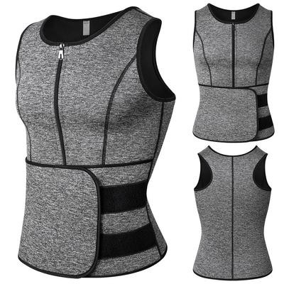 Men Sauna Sweat Zipper Vest Neoprene Corset Waist Trainer Vest Body Shaper Workout Tank Top