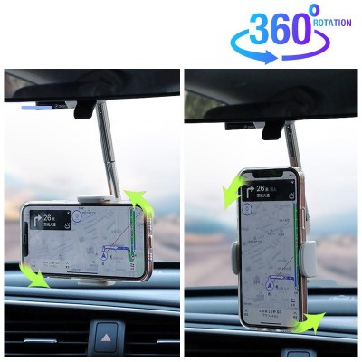 Car phone holder with rear view mirror mount, 360 degree rotation