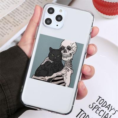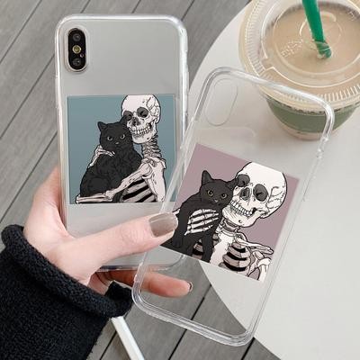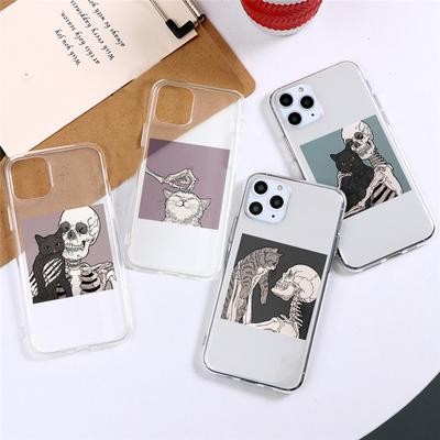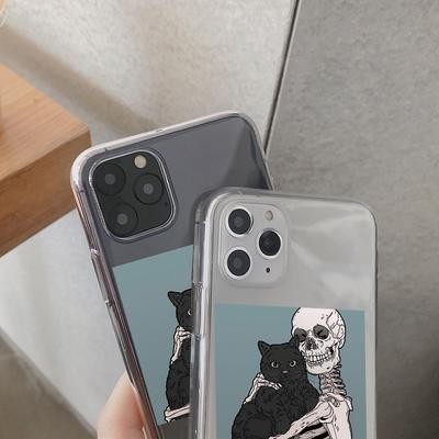 Home > Electronic products > Skull Cute Cat Clear Phone Case for iPhone 13 12 11 XS Samsung Galaxy A52s A70 A