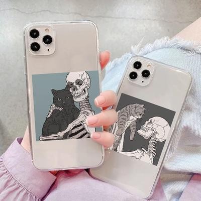 Skull Cute Cat Clear Phone Case for iPhone 13 12 11 XS Samsung Galaxy A52s A70 A