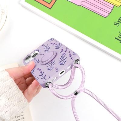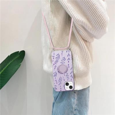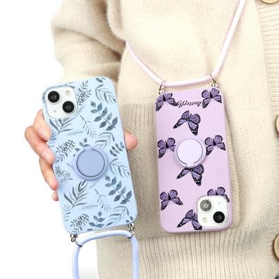 Spotted Doodle Girl Folding Stand Holder Crossbody Strap Lanyard Phone Case for