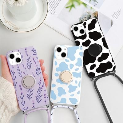 Home > Electronic products > Spotted Doodle Girl Folding Stand Holder Crossbody Strap Lanyard Phone Case for