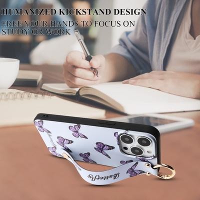 Butterfly Flower Dinosaur Wrist Strap Phone Holder Case for iPhone SE 2022 13 12 11 Pr