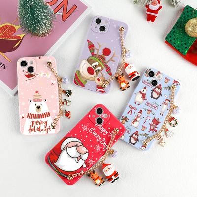 Cartoon Santa Christmas Gift 3D Doll Chain Phone Case for iPhone 13 12 11 Pro Max S