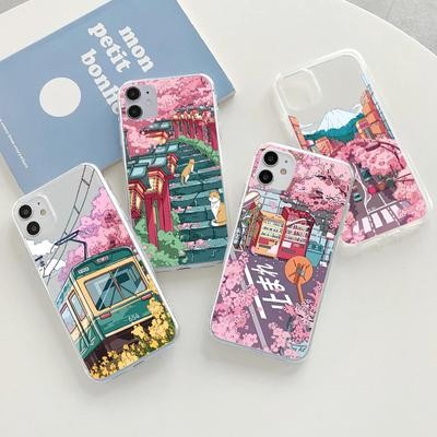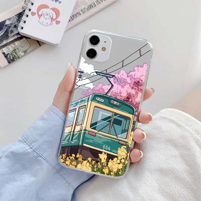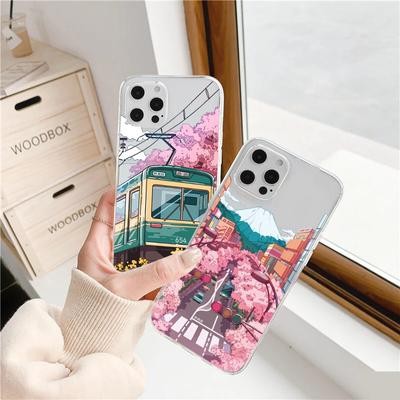 Home > Electronic products > Japanese Aesthetic Train Mount Fuji Clear Case for iPhone 14 13 12 11 Pro Max 8 7 Redmi 12C