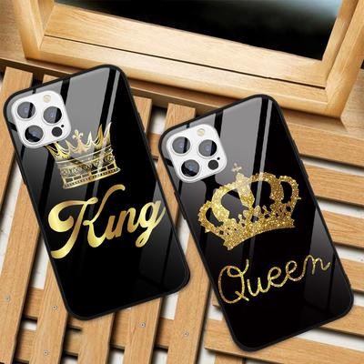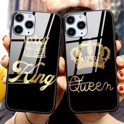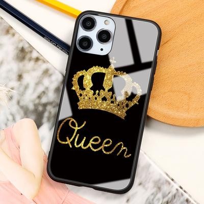 Home > Electronic products > King and Queen Crown Couple Hard Tempered Glass Phone Case for iPhone SE 2022 13