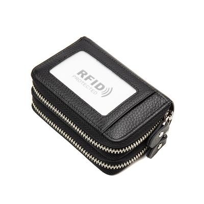 Home > Bags and suitcases > RFID Blocking Fashion Women Card Holder Genuine Leather Double Zipper Large Capacity Female Card