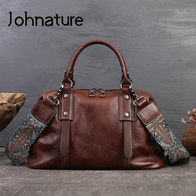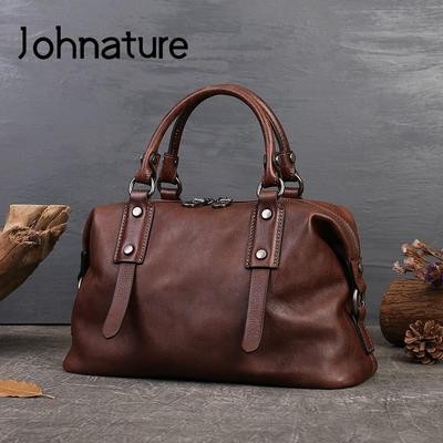 Large Capacity Genuine Leather Casual Tote Vintage Women's Bag Soft Real Leather