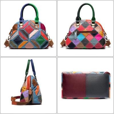 Home > Bags and suitcases > Genuine Leather Women's Bag Color Stitching Soft Cow Leather Handbag Large Capacity Shoulder Bags