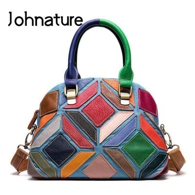 Genuine Leather Women's Bag Color Stitching Soft Cow Leather Handbag Large Capacity Shoulder Bags