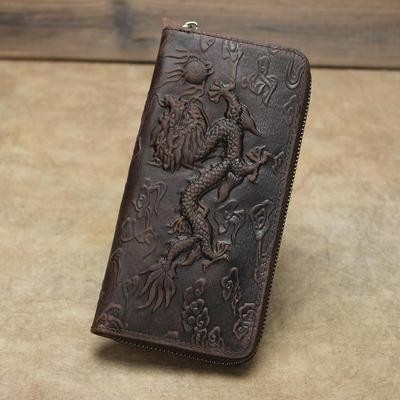 Home > Bags and suitcases > Retro Horse Leather Embossed Wallet 2021 New Dragon Pattern Long Men Wallets Handmade Cor