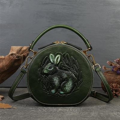 Rabbit Embossed Handbag Genuine Leather Retro Women's Bag Versatile Real Cow Leather Bag