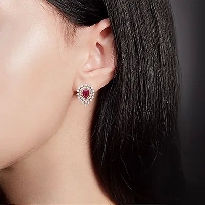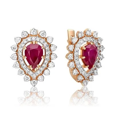 PLATINA Earrings with English lock from 585 red gold with ruby and diamonds