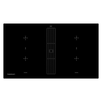 Induction hob with hoodKuppersbusch KMI 9850.0 SRHob:-13-step power adjustment“knobControl” co steel rotary switches(included)-Digital display for hood control-3special steps:melting stage: ? 42 °WITH,keep warm stage: ? 70 °WITH,pasta stage: ? 94 °WITH-Recognition of the presence and size of dishes-Automatic boiling-Residual heat indicator-Memory when disconnected-Forced shutdown(work duration limitation)-Function of combining near and far cooking zones into one-Connection to the hood on the right side-Hood energy efficiency class: A-Size of working areas: 210x190mmHood:-4-step power adjustmenthoods-Digital display for hood control-Hood performance:in standard modes no more530,in intensive mode– 620m3/hPower:-Far left and near right: 2.1 / 3.0*kW-Near left and far right: 1.6 / 1.85*kWConsumedmpower:-Panel: 7.4kW-Hood: 0.115kWNoise levelhoods:-Minimum: 45dB-Maximum: 55dB -Intensive mode: 68dB-Tabletop depth: 55mmAdvantages of an induction hob:-Energy-efficient way of cooking by directly transferring energy to the cookware(appropriate utensils required,made from mmagnetic materials)-Increased security,since energy transfer occurs only when the cookware is on the hob-High heat transfer efficiencymbetween the induction cooking zone and the bottom of the cookware-High heating rate-Low risk of burns,since the cooking zone heats up only from contact with the bottom of the pan;boiled liquid does not stick to the surface-Fast and precise regulationmPowerInductionMany professional chefs are strong proponents of this energy.Inductionmcan be used like this,like no other form of energy-fast,economical and safe. WITHsecret of induction:energy is supplied there,where are the dishes with electromagnetic bottoms located?.Heat is generated directly inside the bottom of the cookware itself,what contributesmmaximallyfastmu heating atmminimum energy consumption.Besides,The hob itself does not heat up,which means ,nothing will burn to itRecognition and presence of cookwareInside all induction cooking zones, in addition to the cookware recognition system, there is a cookware size recognition sensor.It determines the diameter of the cookware and,if necessary,includes additional heating elementWITHflat induction surfaceWITHflat induction surface allows you to adapt the size of the cooking zone to individual needs.Regular sized cooking zones are used for small cookware.For larger cookware and roasting pans, each nearby cooking zonemcan be combined with distant,and also all4cooking zonesmcan be combined into a single space Enhanced heating Induction hobsKuppersbuschcapable of increasingmpowerseparate cooking zones by connecting the modePower.This allowsif necessarysignificantly speed up the heating process Characteristics:-Consumedmpower:hob- 7,4kW /hood- 0,115kW-Device dimensions(W x D): 898X518mm-Niche dimensions (W x D): 860X500mm