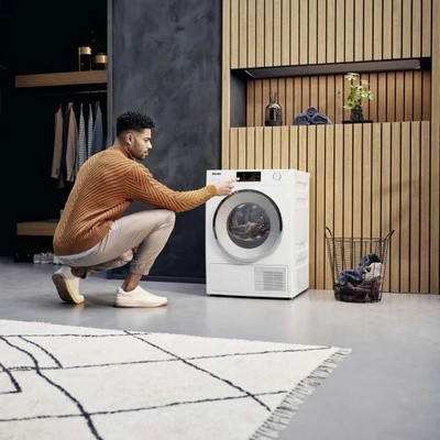 Thanks to the highly efficient lint filter, your clothes will be lint-free. The filter is also easy to maintain: when the message “Clean air channels” appears on the display, the Miele fluff filter can be easily reached because it is located at the front of the appliance. Thanks to the very smooth working surface, the filter is easy and convenient to clean. The lint filter and the laundry never come into contact, so no lint remains on your clothes.Networking with Miele@homeAnti-creaseDryer with heat pumpSmart networkingThe innovative Miele@home system allows you to use the full potential of Miele appliances and improve the organization of your everyday life. All Miele smart home appliances can be connected in a convenient and reliable network. Easy control – via the Miele app, voice or integration into existing Smart Home solutions. The appliances are networked using your home WiFi router and Miele cloud storage. Fewer wrinkles in your laundry after drying.